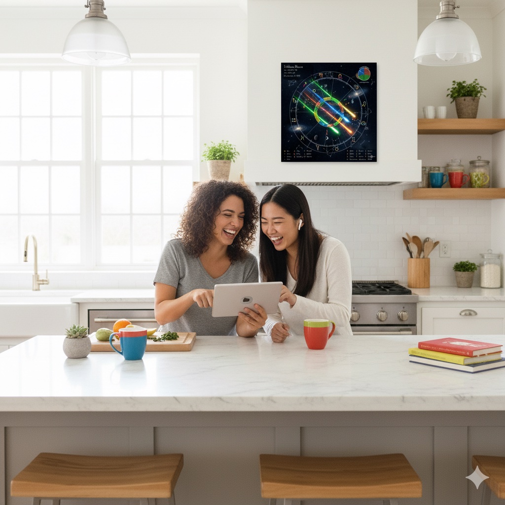 Your personalized astrology wheel chart is a beautiful map of the sky at the moment you were born. It shows where all the planets were, which zodiac signs they were in, and how they connect to each other through special angles called aspects. You’ll also see the twelve houses, which highlight different areas of your life, and the elements—fire, earth, air, and water—that shape your energy and style.